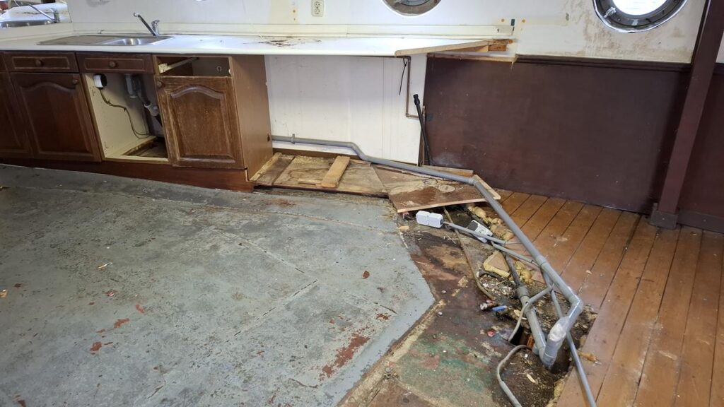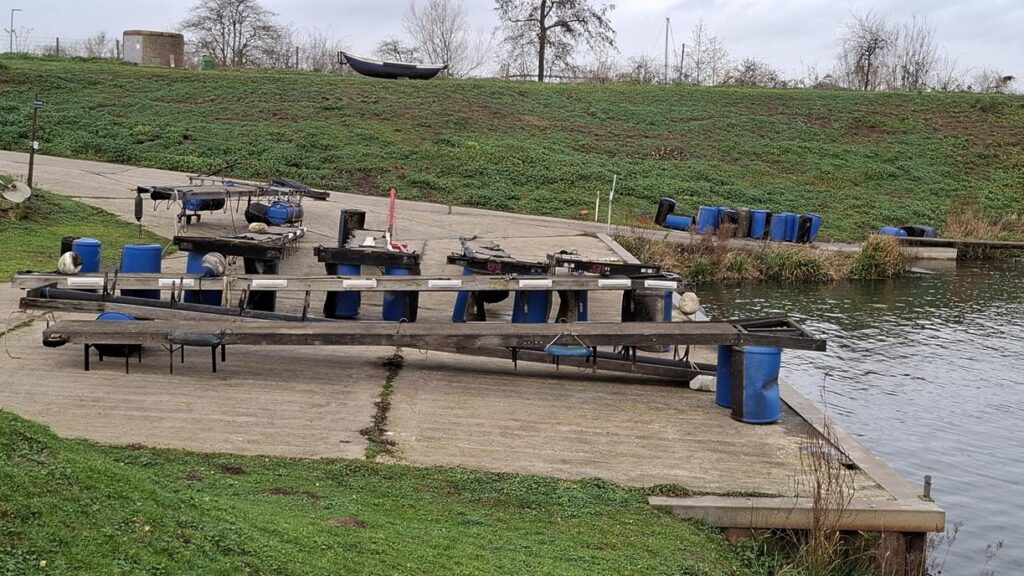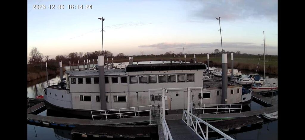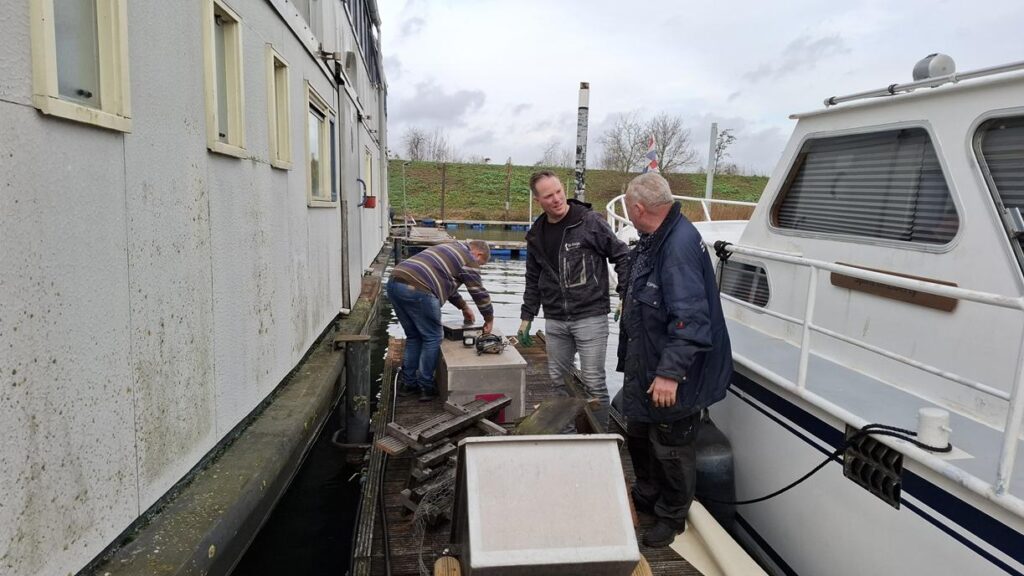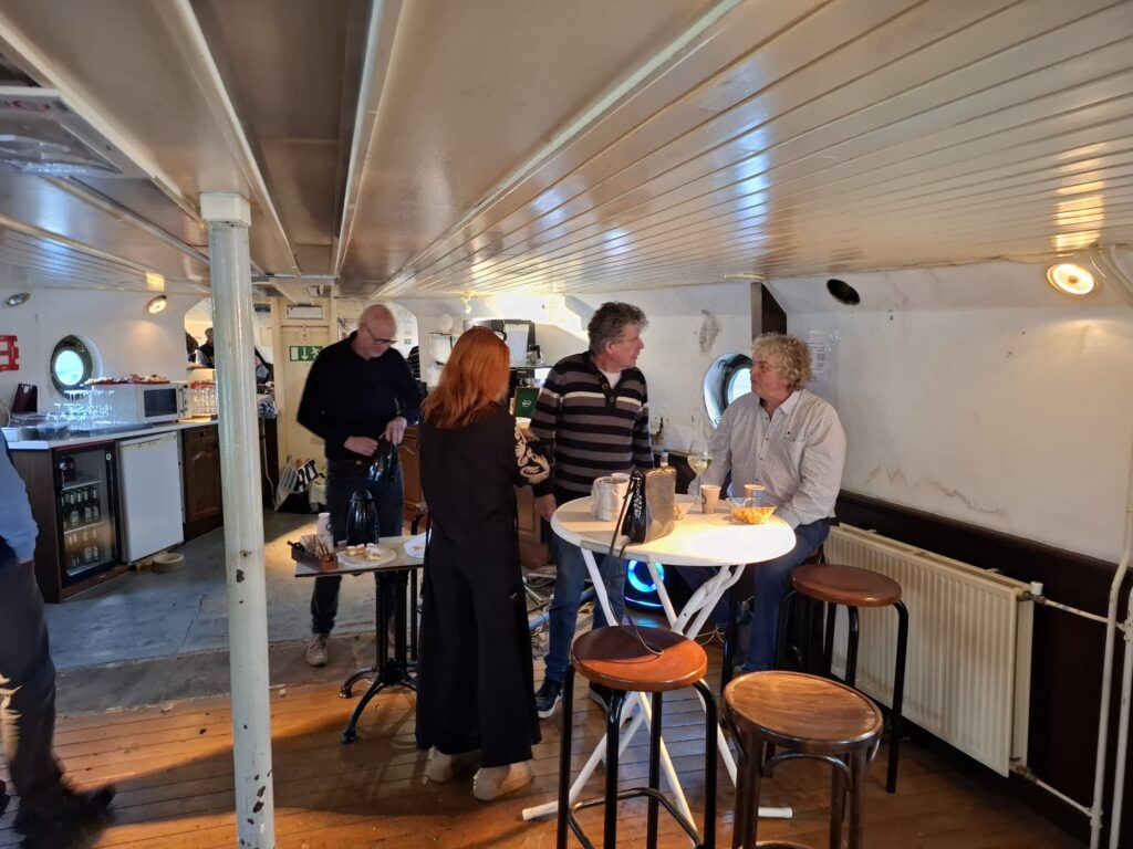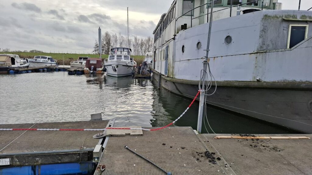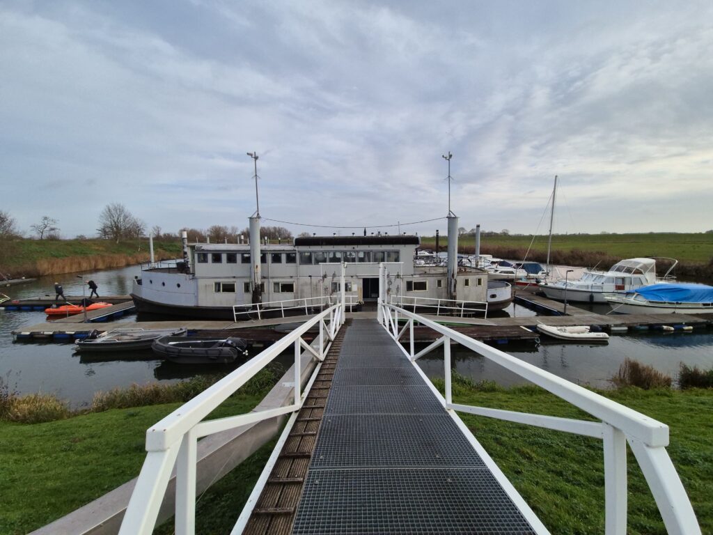 In 1996 werd het oude passagiersschip “KAAG” door onze vereniging aangekocht en verbouwd tot clubschip (klik voor de Historie). 29 jaar lang is zij onder de nieuwe naam “Dame Kaag” een gezellig en nuttig onderkomen geweest. In 2014 is ze nog voor groot onderhoud naar het droogdok van de Sepers Group in Heerewaarden geweest (klik voor de werfbeurt). Inmiddels was ze 78 jaar (gebouwd in 1947 in Dodewaard) en echt aan haar einde. De kosten van het onderhoud waren niet meer verantwoord en er waren vergunning problemen met Rijkswaterstaat. Na een ongeveer 10-jarige “strijd” met RWS en de gemeente om het verkrijgen van een bouwvergunning voor een nieuw clubhuis op de wal is die vergunning eind 2025 rond gekomen. Gedurende de maand december 2025 is door de groep vrijwilligers de Dame Kaag geheel leeggeruimd en losgekoppeld van gas, water en electra.